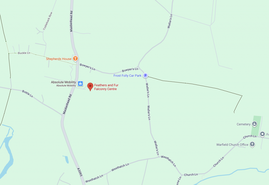 In 2021 Feathers and Fur Falconry Centre relocated to Moss End Garden Village in Bracknell. The Falconry Centre and Gift Shop are now open to the general public to see the birds, for all our experience sessions and birthday parties.